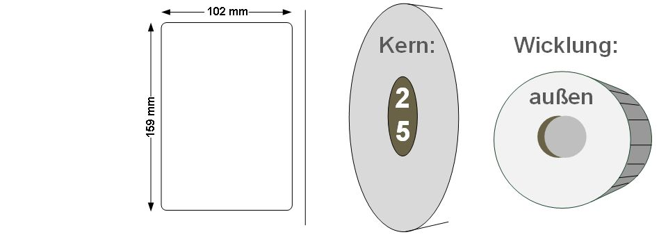 102 x 159 mm, Kern 25 mm, max. AD 127 mm, VE=4 R.